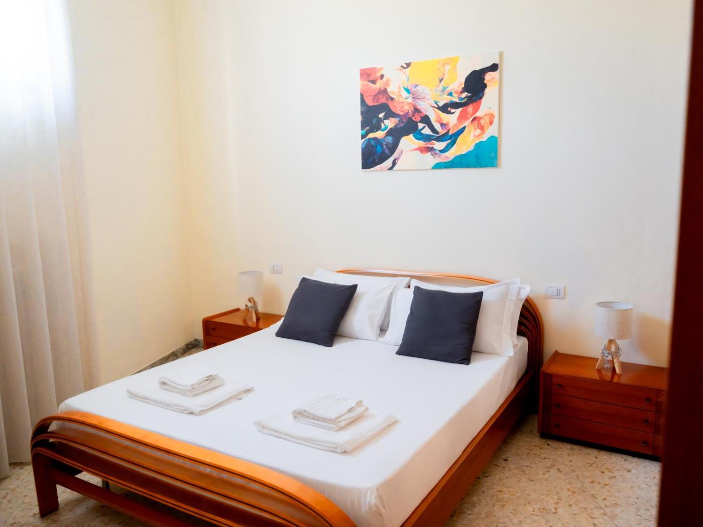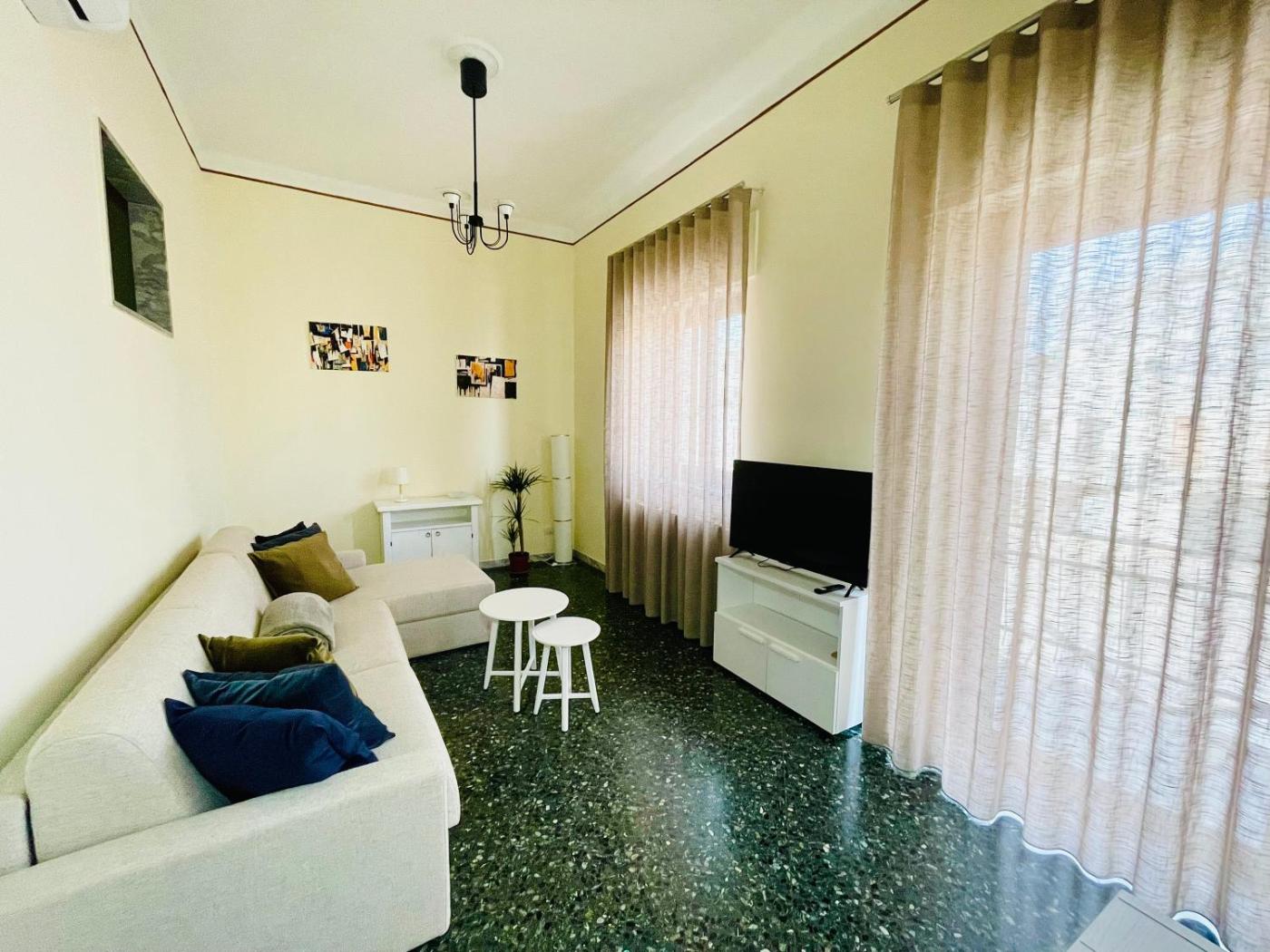Appartamento con Terrazza. Featuring a private entrance, this air-conditioned apartment is comprised of 1 living room, 2 separate bedrooms and 1 bathroom with a shower and a bidet. Meals can be prepared in the well-fitted kitchen, which is fitted with a stovetop, a refrigerator, kitchenware and an oven. The spacious apartment offers a flat-screen TV with streaming services, soundproof walls, a tea and coffee maker, a seating area as well as city views. The unit offers 4 beds.