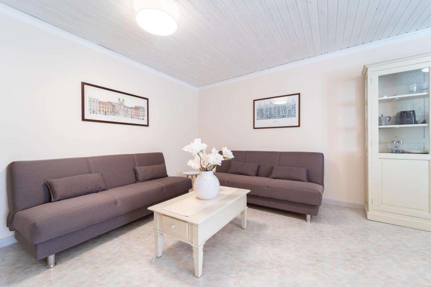 Questo appartamento con aria condizionata comprende 2 camere da letto, un soggiorno, una cucina con utensili più frigorifero, e 1 bagno con bidet e asciugacapelli. Presso questo appartamento troverete asciugamani e lenzuola a disposizione.
