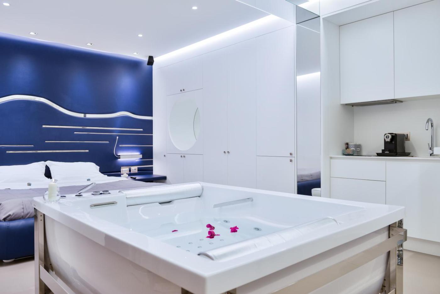 Suite with Spa Bath & Hammam. This suite offers a hot tub. The air-conditioned suite features 1 bedroom and 1 bathroom with a walk-in shower and a bath. The well-equipped kitchen has a stovetop, a refrigerator, a dishwasher and kitchenware. Featuring a terrace with garden views, this suite also provides soundproof walls and a flat-screen TV with streaming services. The unit offers 1 bed. ;