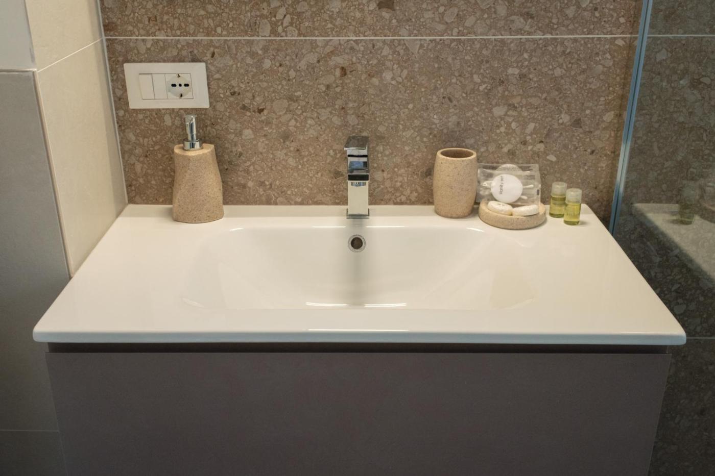 Camera Matrimoniale Deluxe. Providing free toiletries, this double room includes a private bathroom with a shower, a bidet and a hairdryer. The air-conditioned double room provides a flat-screen TV with cable channels, a tea and coffee maker, a wardrobe, parquet floors as well as a quiet street view. The unit offers 1 bed. ;