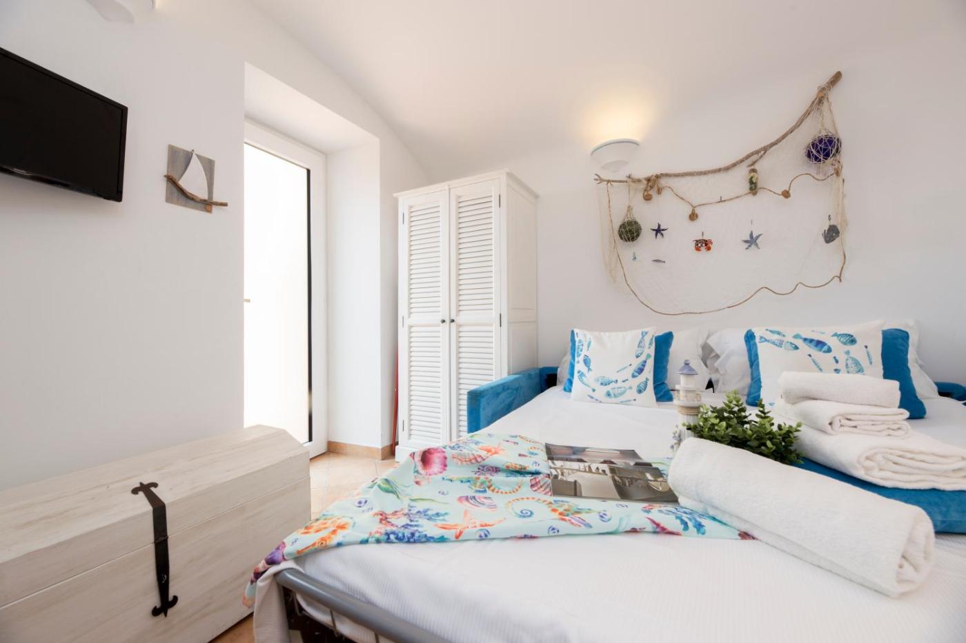 Monolocale con Divano-Letto. The studio provides air conditioning, a washing machine, as well as a private bathroom featuring a shower and a bidet. In the kitchenette, guests will find a stovetop, a refrigerator, an oven and a tea and coffee maker. The studio features a private entrance, a dining area, a wardrobe, heating, as well as a flat-screen TV. The unit offers 1 bed.