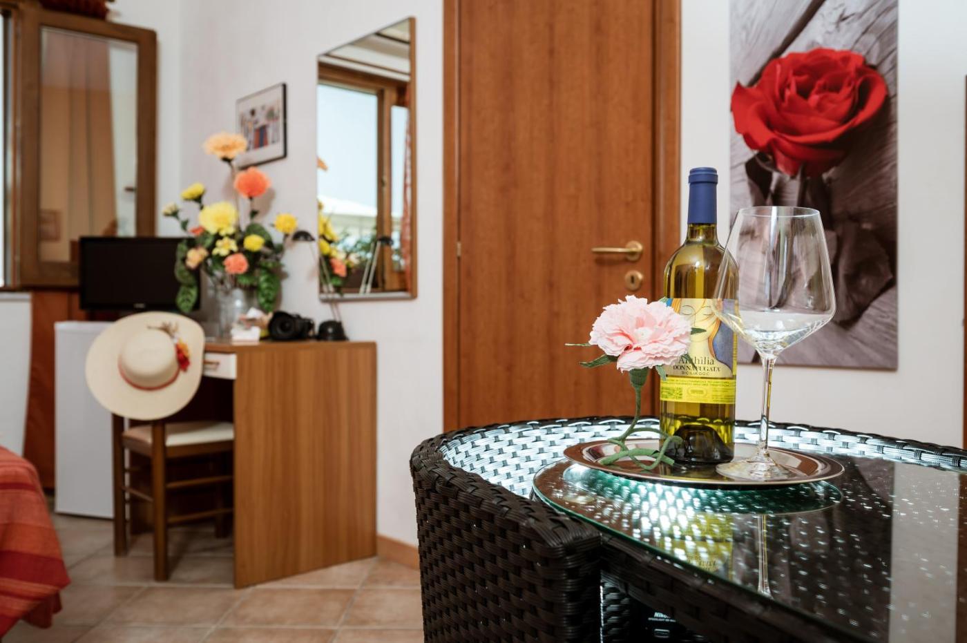 Ogni alloggio presenta un bagno privato con bidet, l’aria condizionata, una TV e un frigorifero.