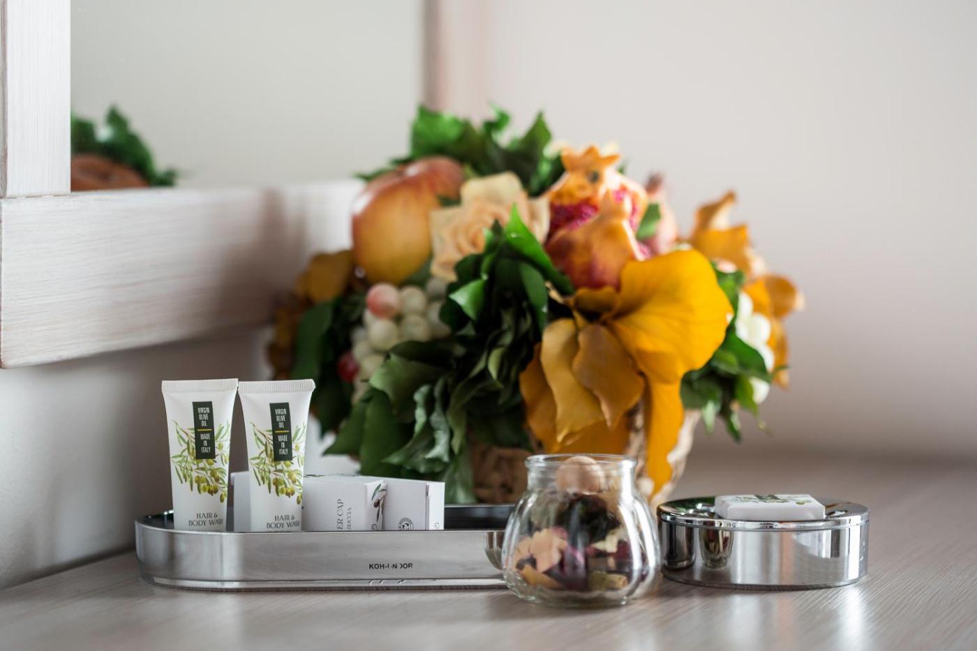Camera Matrimoniale con Letto Supplementare. The double room includes a private bathroom equipped with a shower, a bidet and a hairdryer. This double room features air conditioning, flat-screen TV with satellite channels, garden views, as well as winechampagne for guests. The unit offers 1 bed. ;