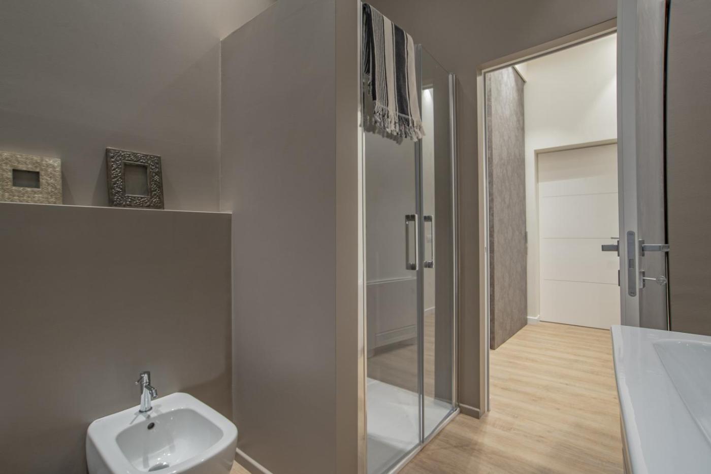 Appartamento Deluxe. Featuring a private entrance, this air-conditioned apartment is comprised of 1 living room, 2 separate bedrooms and 3 bathrooms with a shower and a bidet. Guests can make meals in the kitchen that is fitted with a stovetop, a refrigerator, a dishwasher and kitchenware. The spacious apartment offers a washing machine, a coffee machine, a seating area, a flat-screen TV, as well as city views. The unit offers 3 beds. ;