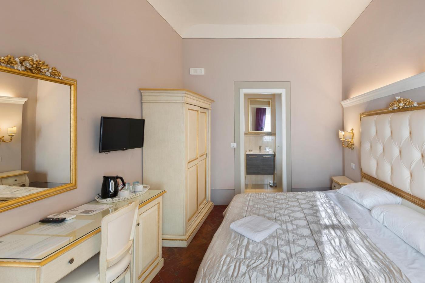 Tutte climatizzate e dotate di tessuti preziosi, le sistemazioni includono una TV a schermo piatto e un bagno interno o esterno con asciugacapelli edi cortesia.