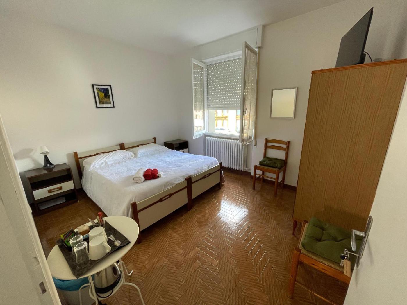 Camera Matrimoniale. Offering free toiletries, this double room includes a shared bathroom with a bath, a shower and a bidet. In the well-equipped kitchen, guests will find a stovetop, a refrigerator, kitchenware and a microwave. The double room offers a TV with cable channels, a tea and coffee maker, a dining area, a wardrobe as well as city views. The unit has 1 bed. ;