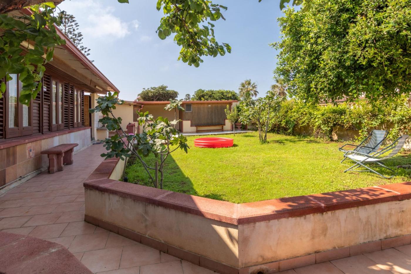 Questa villa comprende 4 camere da letto, 2 bagni, lenzuola, asciugamani, una TV, una cucina con utensili e una terrazza con la vista sul giardino.