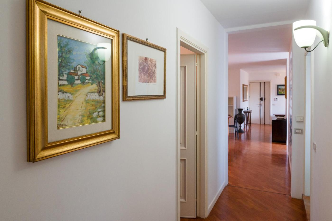 Appartamento Deluxe con 2 Camere da Letto e Balcone. This apartments standout feature is the fireplace. Boasting a private entrance, this air-conditioned apartment includes 1 living room, 2 separate bedrooms and 2 bathrooms with a bath and a bidet. In the well-fitted kitchen, guests will find a stovetop, a refrigerator, kitchenware and an oven. The spacious apartment offers a washing machine, soundproof walls, a tea and coffee maker, a flat-screen TV, as well as city views. The unit has 3 beds.