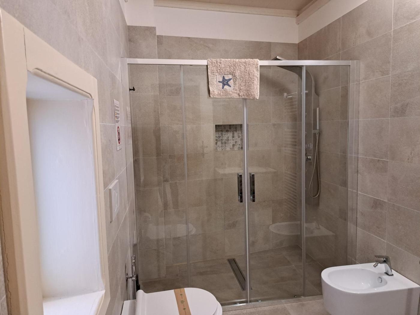 Camera Familiare con Bagno Privato. The fully equipped kitchen has a stovetop, a refrigerator, kitchenware and an oven. The family room features air conditioning, a private entrance, as well as a private bathroom boasting a walk-in shower and a bidet. The unit has 3 beds. ;