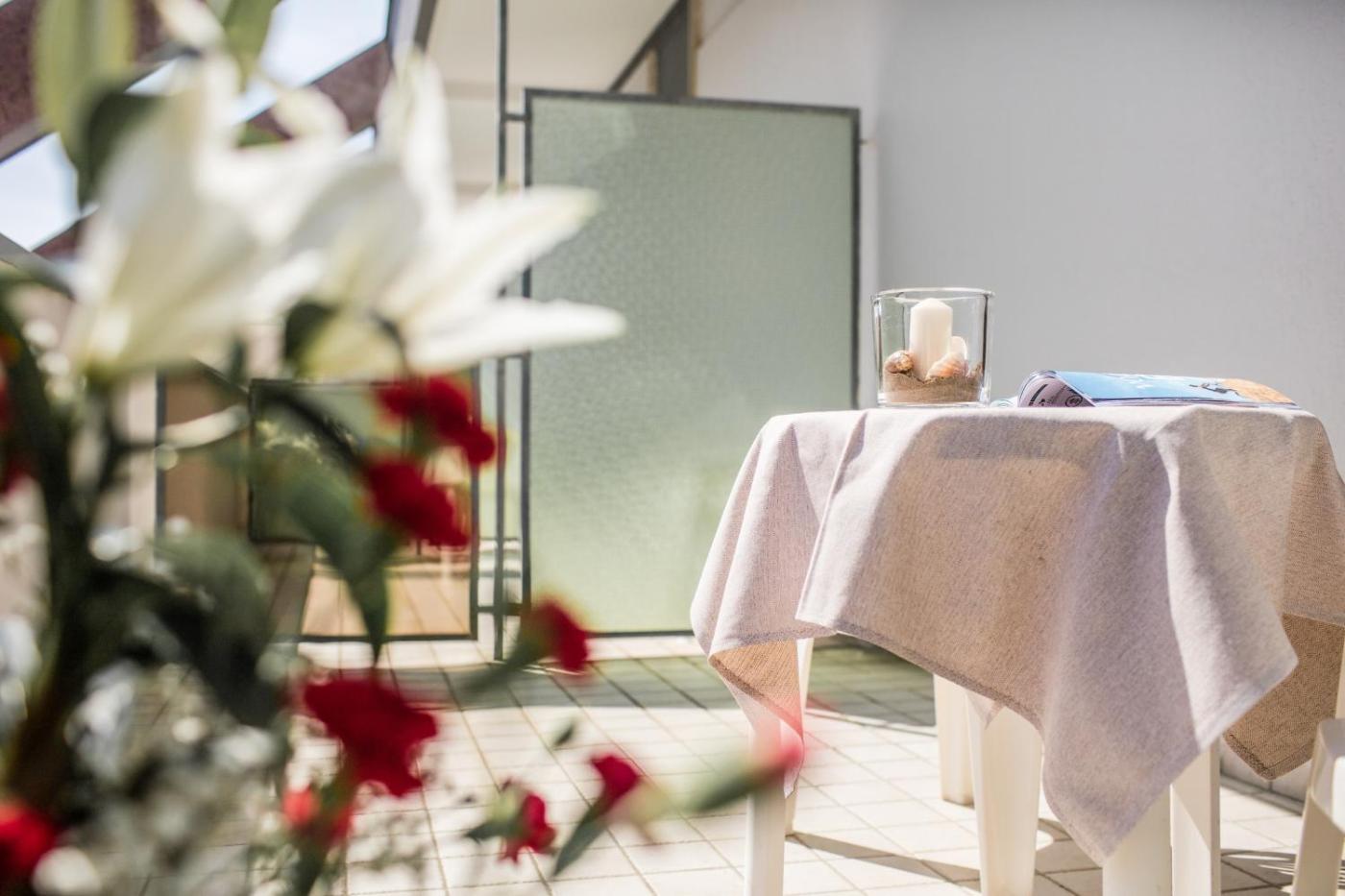 Le camere sono climatizzate e funzionali. TV satellitare e bagno privato con asciugacapelli edi cortesia. Alcune vantano una vista parziale sul mare e un balcone.