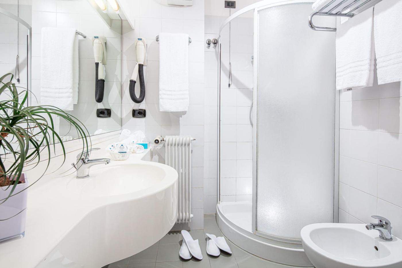 Le sistemazioni dellHotel Helvetia sono dotate di mobili in legno, TV satellitare e bagno privato completo di asciugacapelli edi cortesia. In alcuni casi è presente un balcone con vista sul giardino.