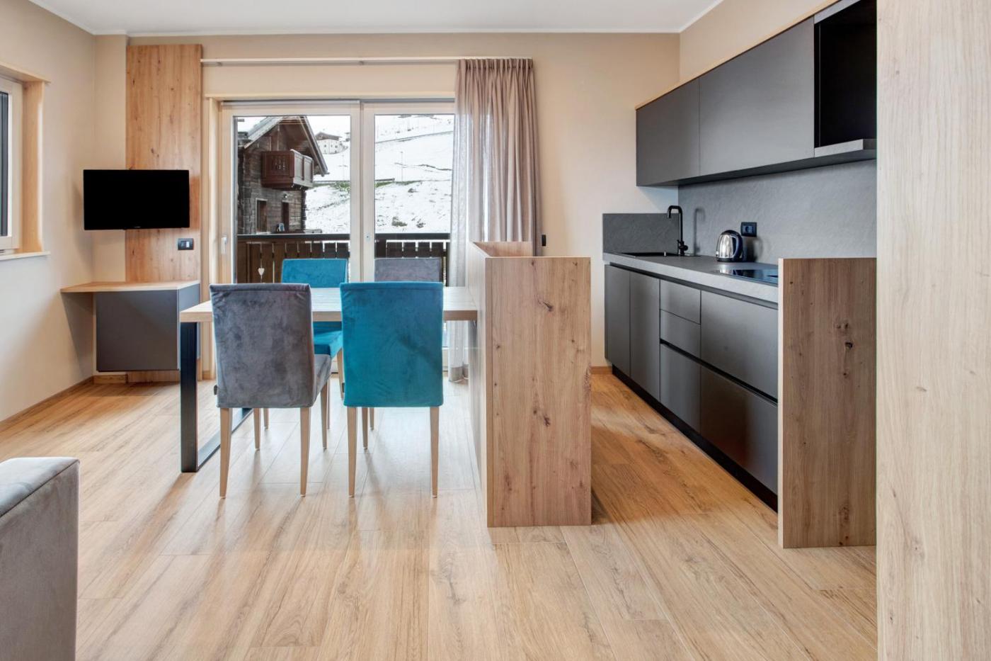 Ogni alloggio prevede un balcone con vista sulla montagna, una TV con canali satellitari, una cucina e un bagno privato dotato di doccia,di cortesia e asciugacapelli. In dotazione anche una lavastoviglie, un microonde e un tostapane, oltre a una macchina da caffè e un bollitore elettrico.