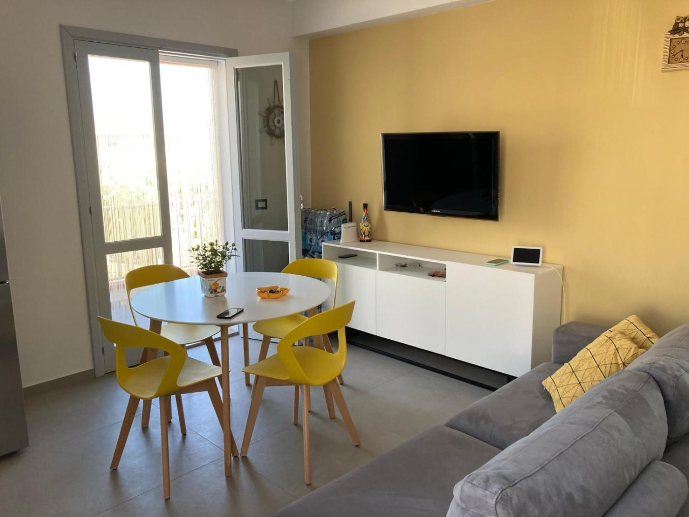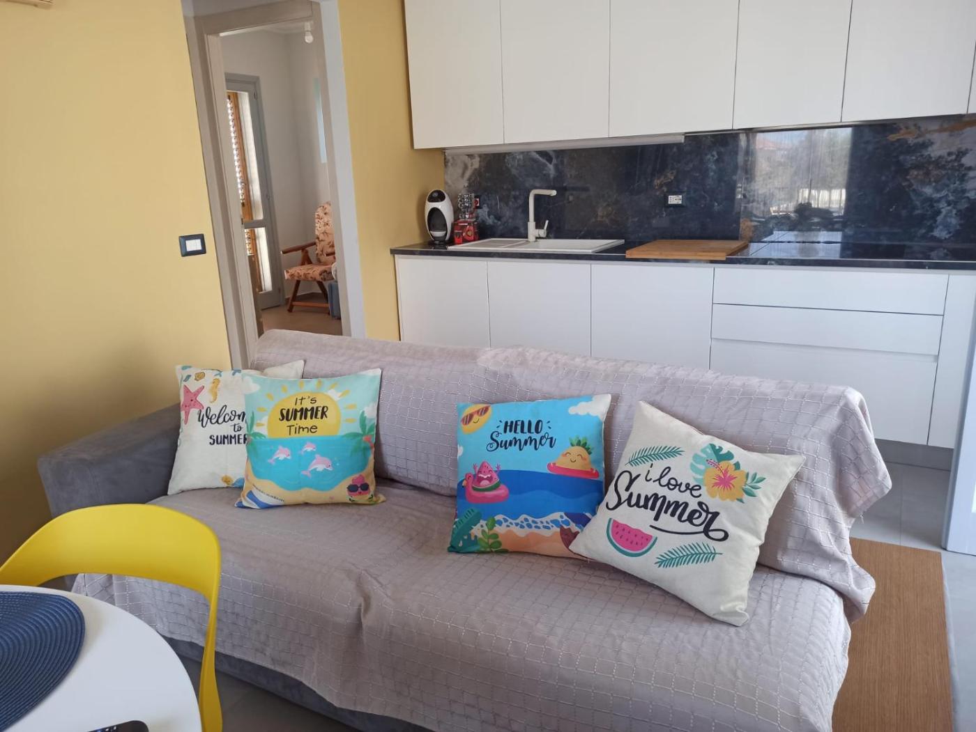 Casa Vacanze. Casa vacanze climatizzata con ingresso indipendente, composta da 1 soggiorno, 2 camere da letto separate e 1 bagno con doccia e asciugacapelli. Troverete una cucina ben attrezzata con piano cottura, frigorifero, lavastoviglie e utensili. La casa vacanze dispone inoltre di balcone affacciato sul mare, lavatrice e TV a schermo piatto. L’alloggio presenta 3 letti.