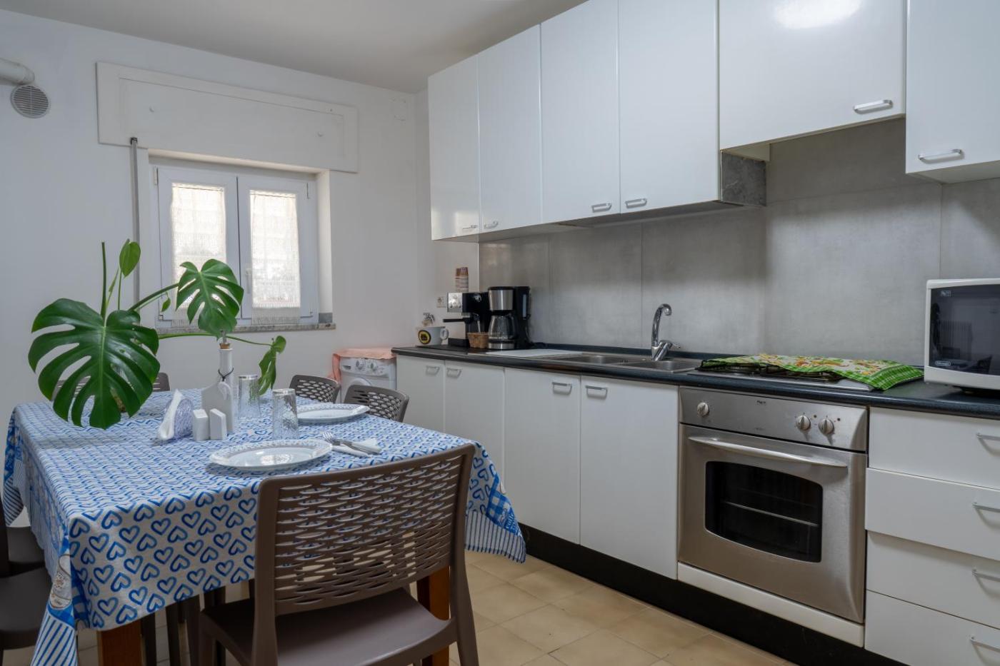 Questa casa vacanze comprende 1 camera da letto, una cucina con frigorifero e forno e 1 bagno con bidet,di cortesia e lavatrice. Presso questa casa vacanze troverete asciugamani e lenzuola in dotazione.