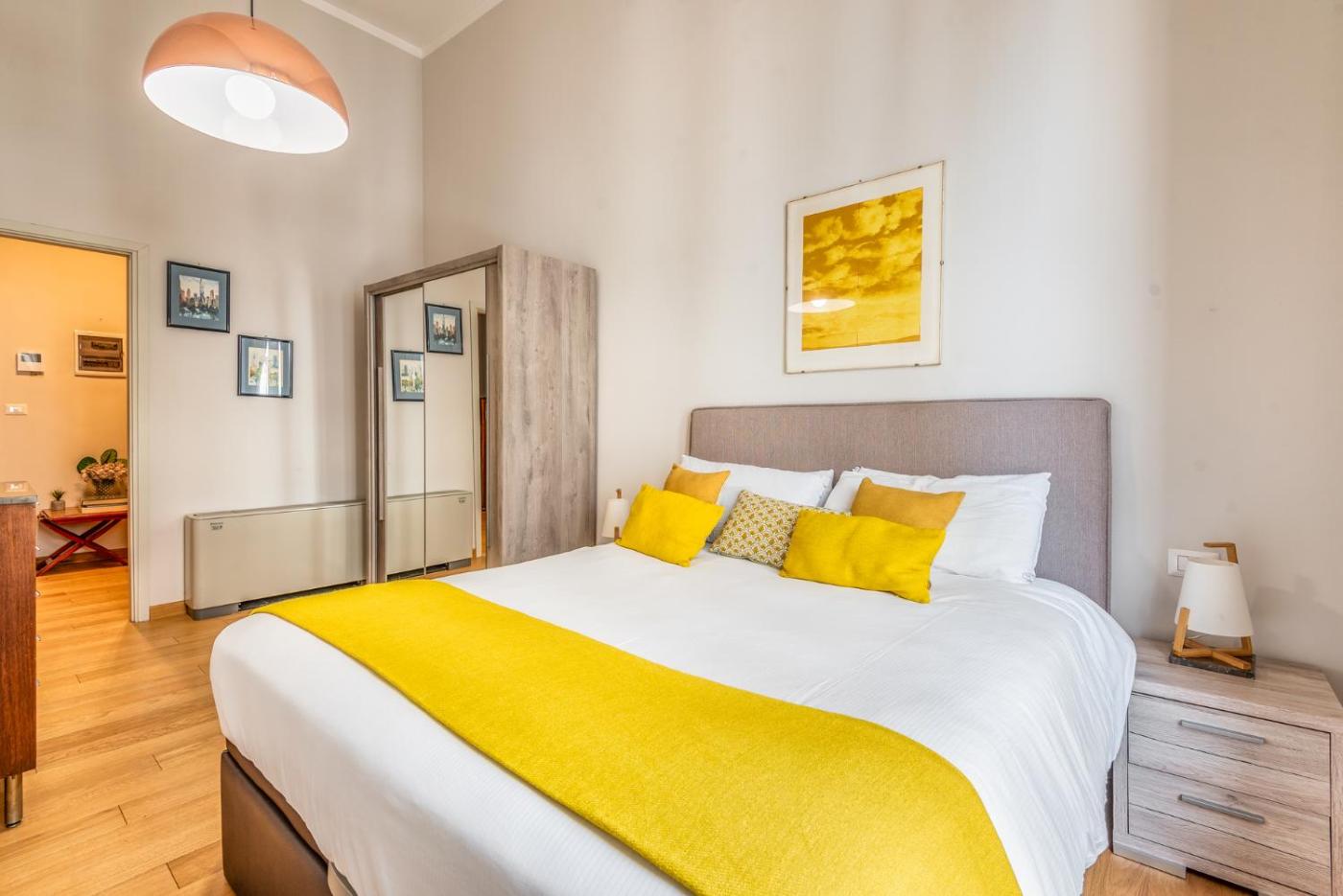 Appartamento con 2 Camere da Letto. This spacious apartment comprises 1 living room, 2 separate bedrooms and 1 bathroom with a shower and free toiletries. In the fully equipped kitchen, guests will find a stovetop, a refrigerator, a dishwasher and kitchenware. The air-conditioned apartment provides a flat-screen TV with streaming services, a washing machine, a tea and coffee maker, a seating area as well as city views. The unit offers 2 beds.
