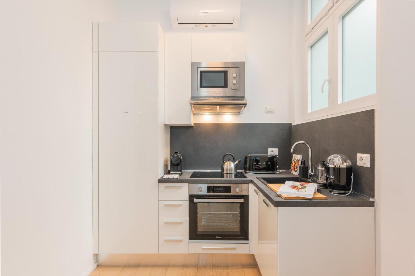 Questo appartamento con aria condizionata comprende 1 camera da letto, un soggiorno, una cucina con utensili, frigorifero e macchina da caffè, e 1 bagno con bidet e doccia. Presso questo appartamento troverete asciugamani e lenzuola tra i servizi disponibili.