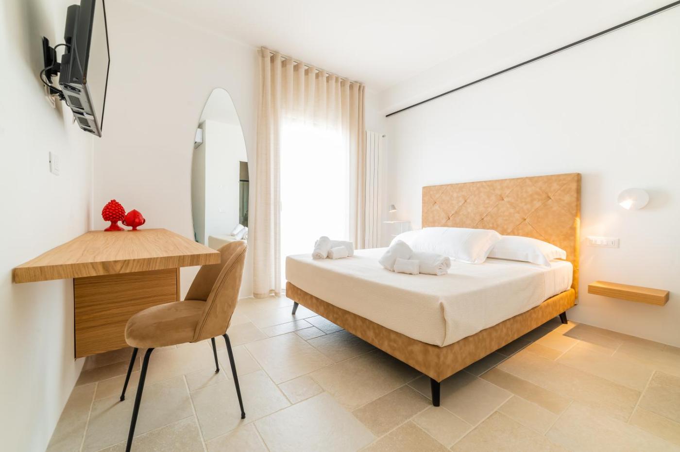 Camera Matrimoniale con Vista Mare. Camera matrimoniale dotata di bagno privato con doccia a filo pavimento, bidet, asciugacapelli edi cortesia. La sistemazione, climatizzata e affacciata sul mare, presenta una TV via cavo a schermo piatto, un ingresso indipendente, un minibar e unper la preparazione di tè e caffè. L’alloggio dispone di 1 letto.