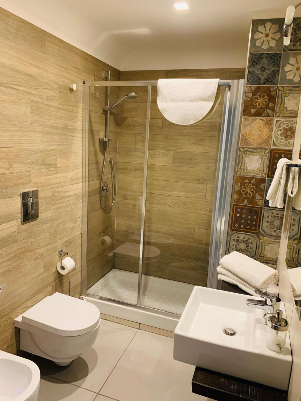Camera Quadrupla Comfort. Providing free toiletries, this quadruple room includes a private bathroom with a shower, a bidet and a hairdryer. The air-conditioned quadruple room provides a flat-screen TV, a minibar, a tea and coffee maker, a wardrobe as well as city views. The unit offers 2 beds. ;