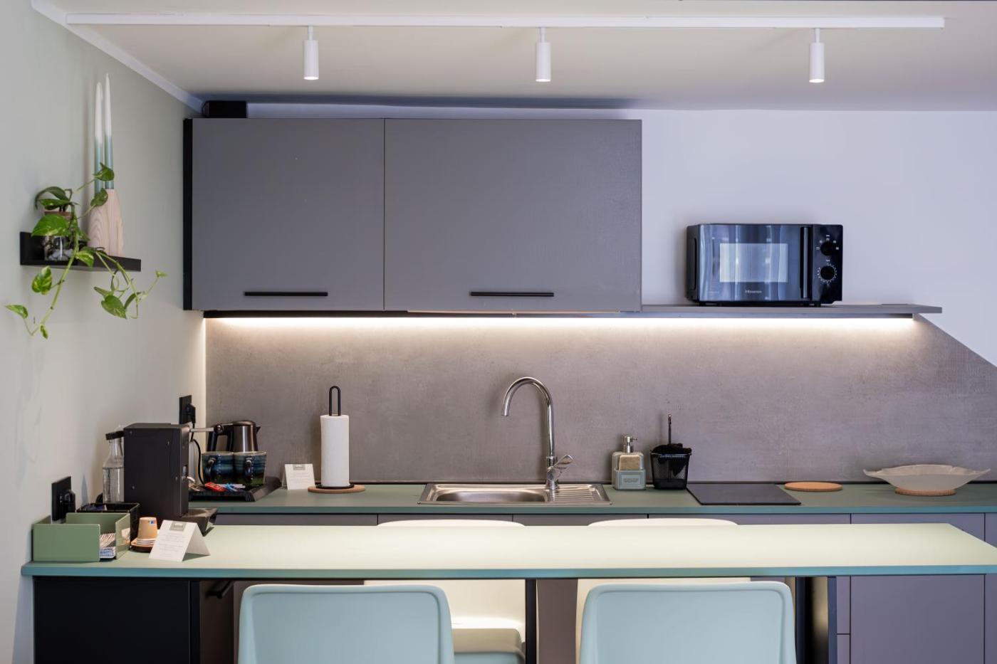 Questo appartamento con 1 camera da letto e aria condizionata presenta 1 bagno con bidet, doccia edi cortesia. Langolo cottura ha frigorifero, microonde e piano cottura, più macchina da caffè e bollitore elettrico.