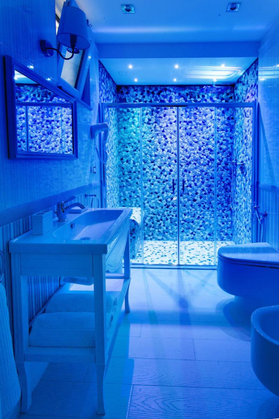 Tutte le camere dispongono di aria condizionata, TV satellitare, minibar e bagno privato dotato di doccia con cromoterapia, asciugacapelli edi cortesia.