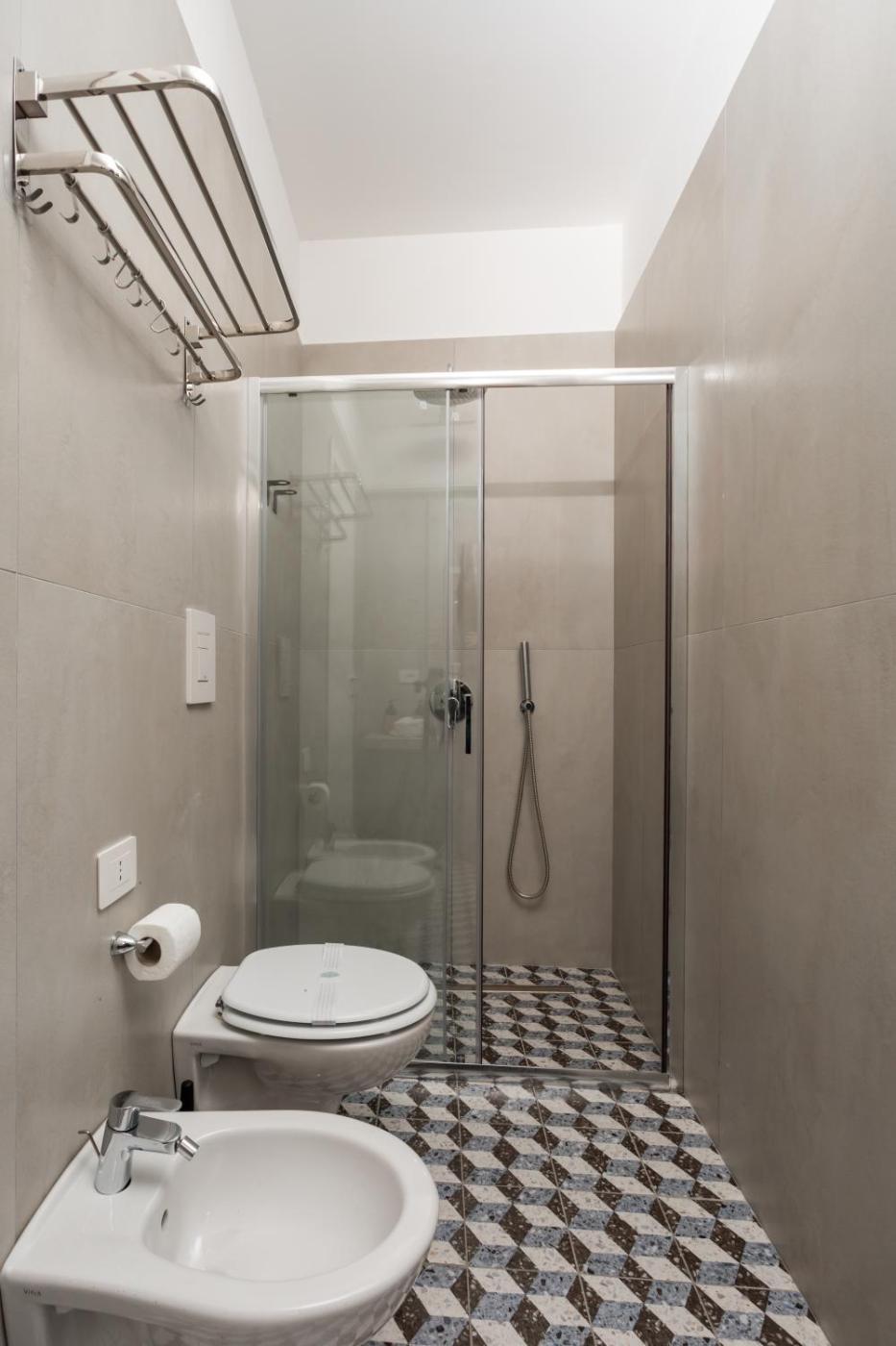 Camera Matrimoniale con Bagno Privato. Camera matrimoniale climatizzata dotata di armadio, balcone con vista sulla cittĂ e bagno privato completo di doccia. Lalloggio presenta 1 letto. ;