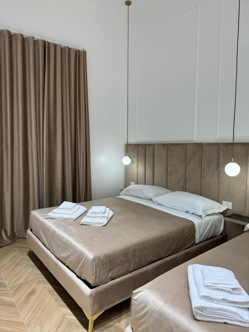 Camera Tripla Deluxe. Offering free toiletries, this triple room includes a private bathroom with a shower, a bidet and a hairdryer. The air-conditioned triple room offers a flat-screen TV with satellite channels, a tea and coffee maker, a wardrobe, heating as well as a quiet street view. The unit has 2 beds. ;
