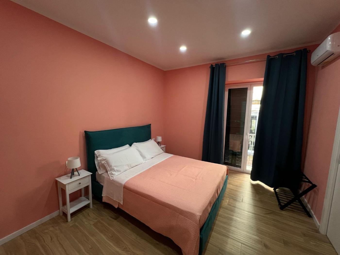 Camera Matrimoniale. Camera matrimoniale climatizzata dotata di TV a schermo piatto con servizi di streaming, bagno privato e balcone con vista sulla cittĂ . Lalloggio dispone di 1 letto.