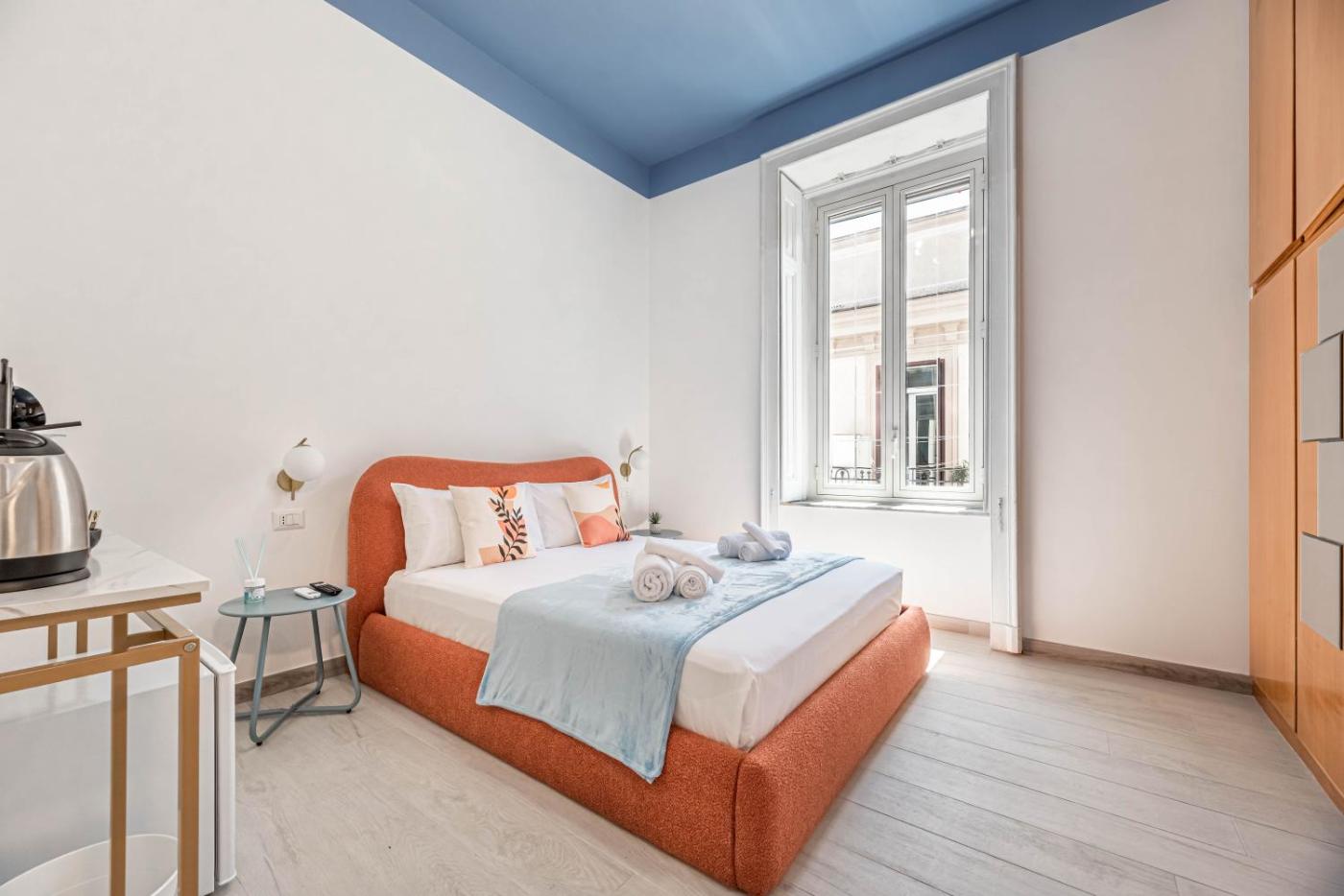 Camera Deluxe. Camera matrimoniale dotata di bagno privato con doccia, asciugacapelli, bidet edi cortesia. La sistemazione dispone inoltre di aria condizionata,per la preparazione di tè e caffè, TV a schermo piatto e balcone. L’alloggio presenta 1 letto. ;