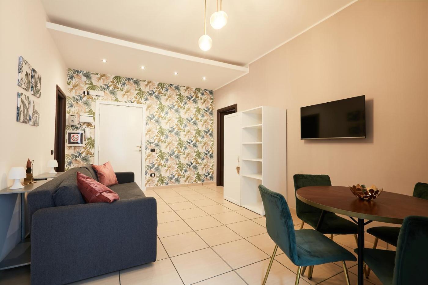 Appartamento con 1 Camera da Letto. Featuring a private entrance, this air-conditioned apartment is comprised of 1 living room, 1 separate bedroom and 1 bathroom with a shower and a bidet. The well-equipped kitchenette has a stovetop, a refrigerator, kitchenware and a toaster. The apartment features tiled floors, a seating area with a flat-screen TV with streaming services, soundproof walls, a tea and coffee maker, as well as a dining area. The unit offers 2 beds.