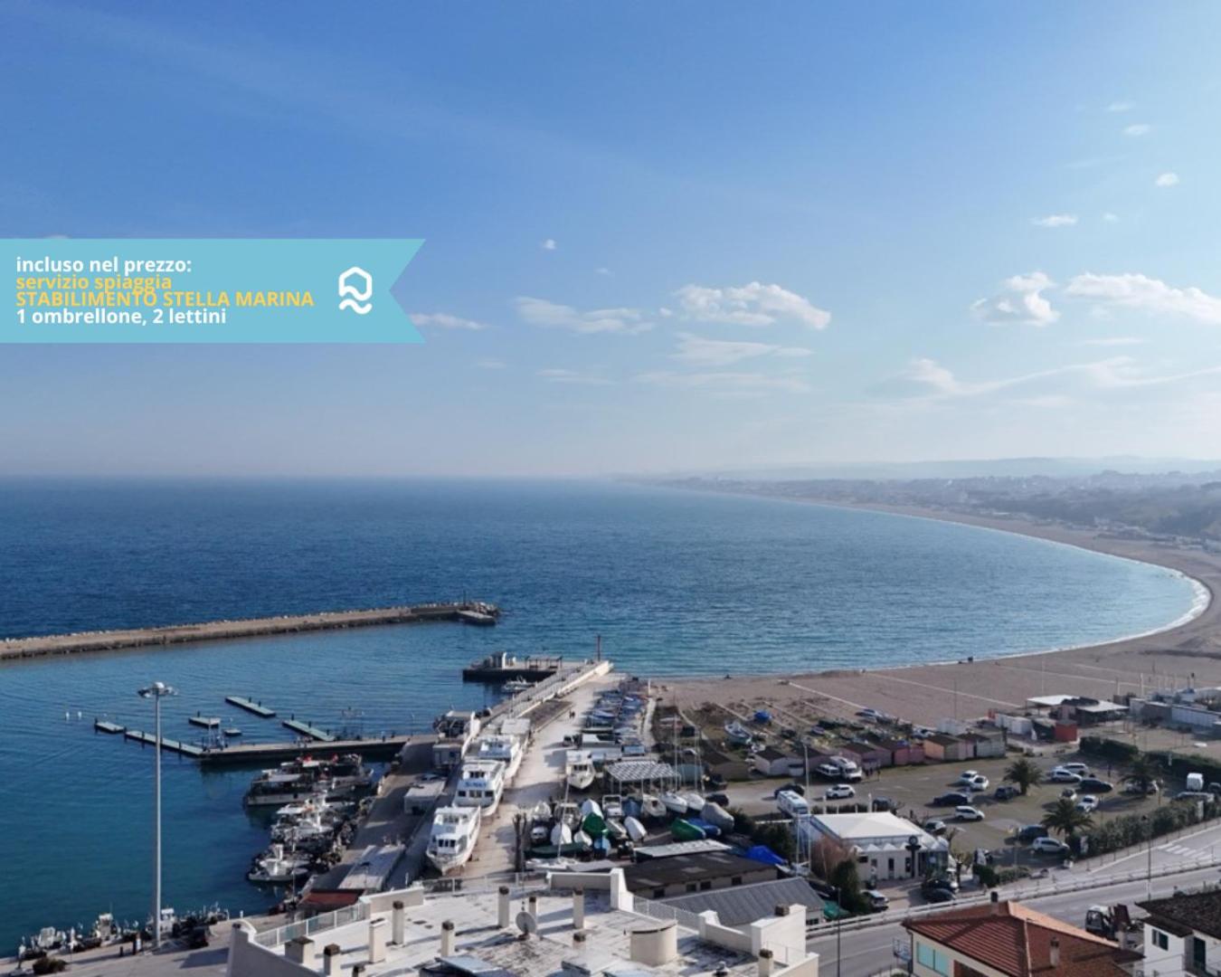 Numana, cielo-terra con meraviglioso giardino vista mare - N254 è una struttura fronte spiaggia a Numana con una zona spiaggia privata, vicino a Spiaggia di Numana. In questo appartamento avrete accesso a un balcone.