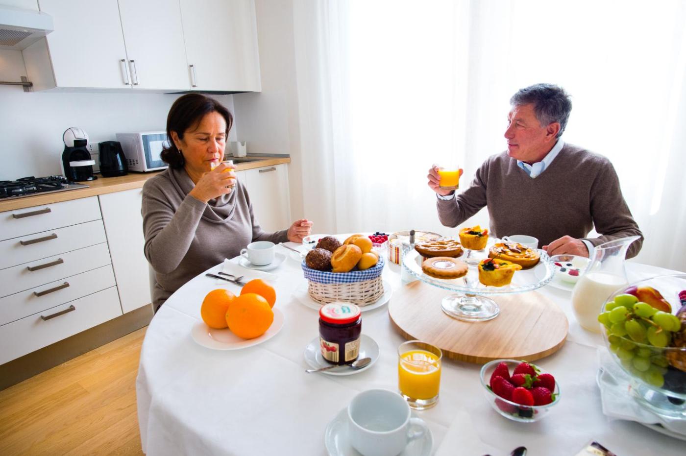 Alcune unità presentano anche una cucina con frigorifero, lavastoviglie e microonde.