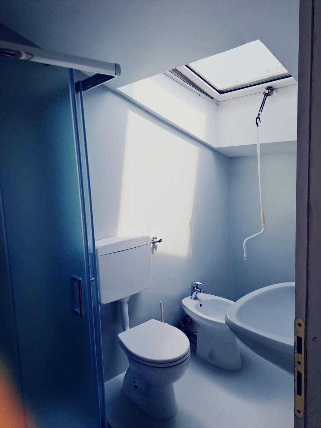 The second bathroom is without shower, with washing machine