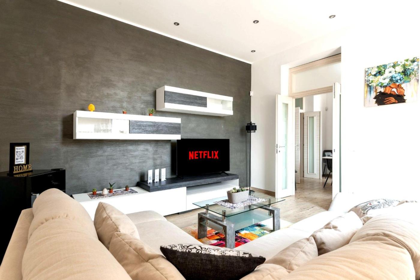 Casa con 2 Camere da Letto. This spacious holiday home comprises 2 living rooms, 2 separate bedrooms and 2 bathrooms with a shower and free toiletries. Meals can be prepared in the well-fitted kitchen, which comes with a stovetop, a refrigerator, kitchenware and an oven. The air-conditioned holiday home provides a flat-screen TV with streaming services, a washing machine, soundproof walls, a minibar as well as city views. The unit offers 4 beds.