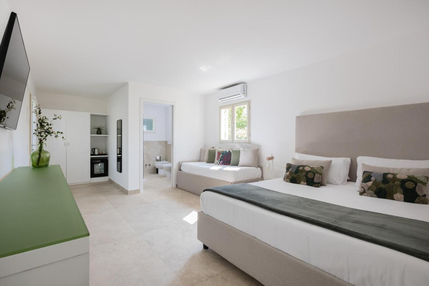 Suite Familiare. Boasting a private entrance, this air-conditioned suite comes with 1 living room, 1 separate bedroom and 2 bathrooms with a shower and a bidet. Featuring a terrace with garden views, this suite also features a minibar and a TV with satellite channels. The unit has 4 beds.