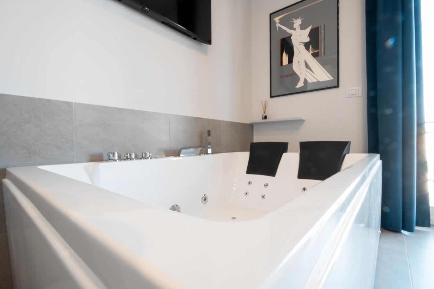Suite con Vasca Idromassaggio. This suite features a hot tub. The air-conditioned suite has 1 bedroom and 1 bathroom with a bath and a shower. Boasting a terrace with city views, this suite also features soundproof walls and a flat-screen TV. The unit has 1 bed. ;
