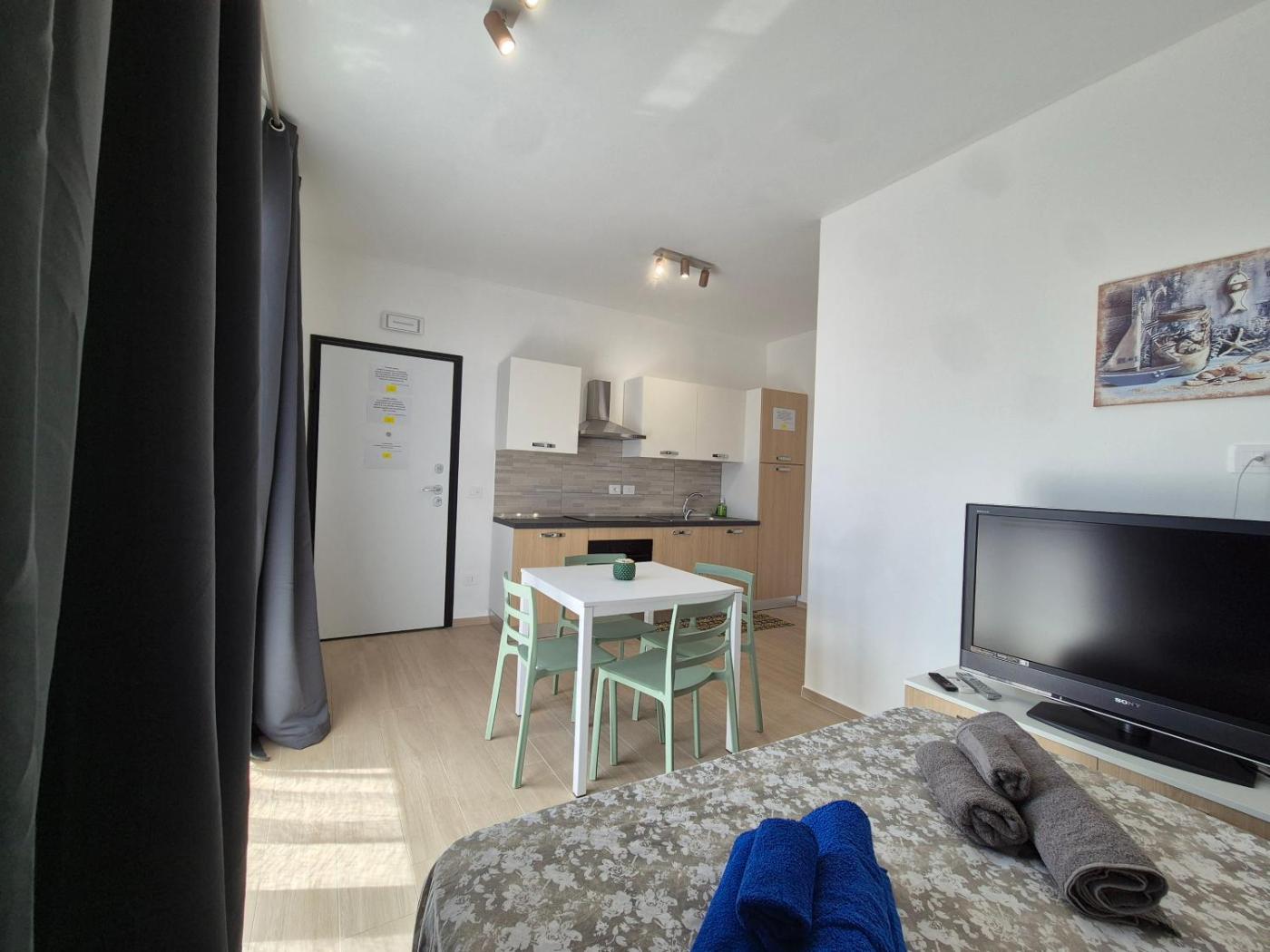 Appartamento con 1 Camera da Letto. This air-conditioned apartment comprises 1 living room, 1 separate bedroom and 1 bathroom with a walk-in shower. The well-equipped kitchen features a stovetop, a refrigerator, kitchenware and an oven. Featuring a balcony with sea views, this apartment also provides a washing machine and a flat-screen TV. The unit offers 2 beds.