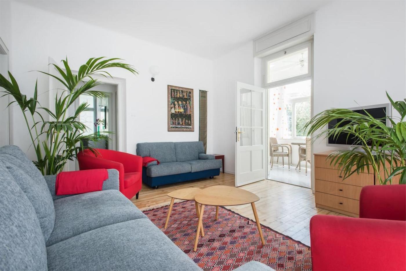 Appartamento con 2 Camere da Letto. This spacious apartment is comprised of 1 living room, 2 separate bedrooms and 2 bathrooms with a shower and a bidet. The fully equipped kitchen has a stovetop, a refrigerator, a dishwasher and kitchenware. The apartment features tiled floors, a seating area with a flat-screen TV, a washing machine, a tea and coffee maker as well as garden views. The unit offers 5 beds. ;