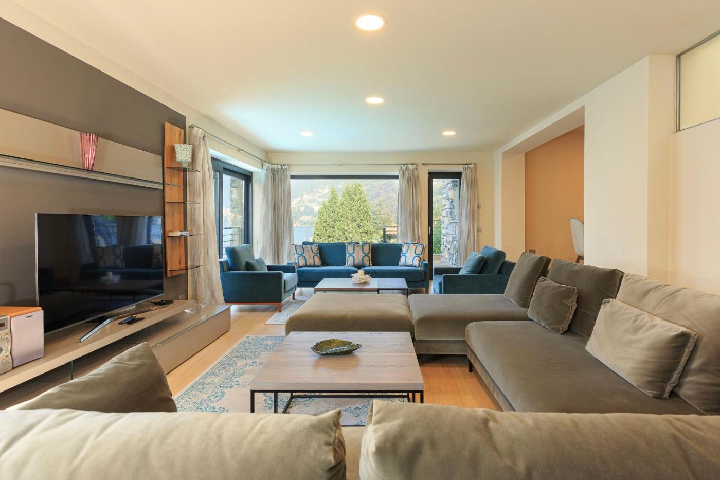 Villa con 5 Camere da Letto. This villas special feature is the private pool. Featuring 5 bedrooms and 6 bathrooms with a shower, this spacious villa offers a well-fitted kitchen and a terrace. Guests will find a stovetop, a refrigerator, a dishwasher and kitchenware in the fully equipped kitchen. The villa also offers a barbecue. The air-conditioned villa provides a TV with streaming services, a washing machine, a tea and coffee maker, a wardrobe as well as lake views. The unit has 5 beds.