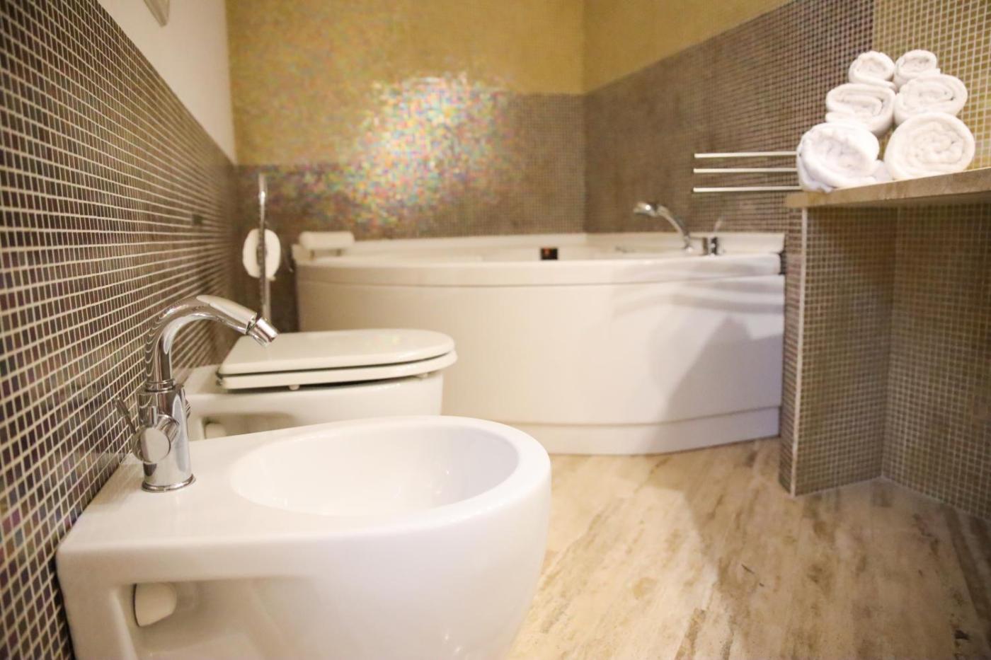 Appartamento con 1 Camera da Letto e Vasca Idromassaggio. The hot tub is the standout feature of this apartment. Boasting a private entrance, this air-conditioned apartment includes 1 living room, 1 separate bedroom and 2 bathrooms with a bath and a shower. The well-equipped kitchen features a stovetop, a refrigerator, a dishwasher and kitchenware. The apartment has tiled floors, a seating area with a flat-screen TV with streaming services, a washing machine, a tea and coffee maker, as well as a dining area. The unit has 2 beds.