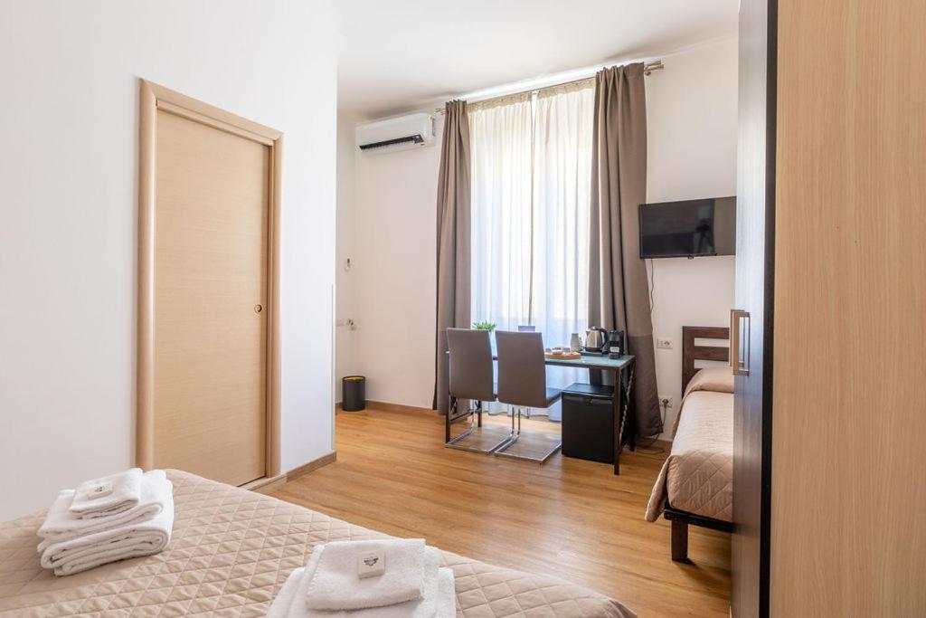Camera Tripla. Questa camera tripla include un bagno privato con doccia, bidet, asciugacapelli edi cortesia. Climatizzata e affacciata sul cortile interno, la sistemazione dispone di minibar,per la preparazione di tè e caffè, armadio e TV con servizi streaming. L’alloggio presenta 2 letti. ;