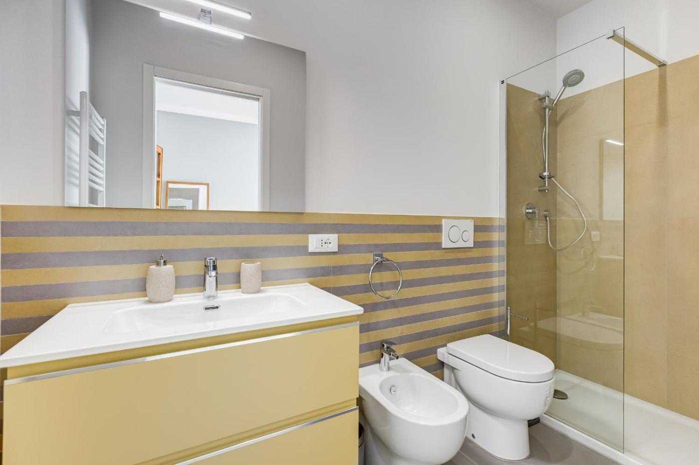 Appartamento Standard con 2 Camere da Letto. This spacious apartment comes with a kitchenette, a seating area, 2 separate bedrooms and 2 bathrooms with a shower and a bidet. In the well-equipped kitchenette, guests will find a stovetop, a refrigerator, a dishwasher and kitchenware. The air-conditioned apartment features a flat-screen TV with streaming services, a washing machine, a tea and coffee maker, a dining area as well as ancourtyard view. The unit has 2 beds.