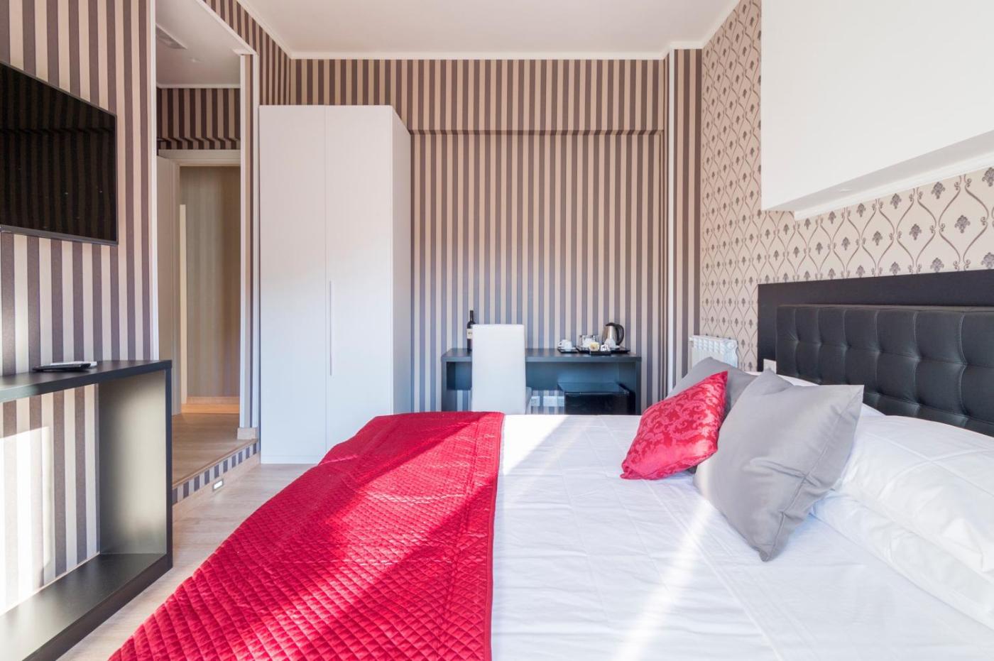 Camera Matrimoniale Deluxe con Balcone. Con un balcone attrezzato con tavolo e sedie, questa camera climatizzata include un materasso in memory foam, un minibar e un bollitore elettrico con una selezione di tè. Il moderno bagno presenta unampia doccia con cromoterapia e asciugacapelli. Questo alloggio può ospitare 1 letto supplementare. ;