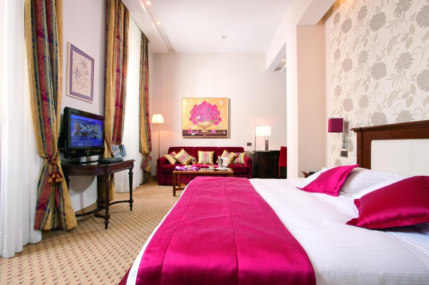 LHotel Nazionale occupa un edificio ristrutturato del 19° secolo, a pochi passi dalla Fontana di Trevi e da Piazza di Spagna. Limponente Pantheon si trova proprio dietro langolo.