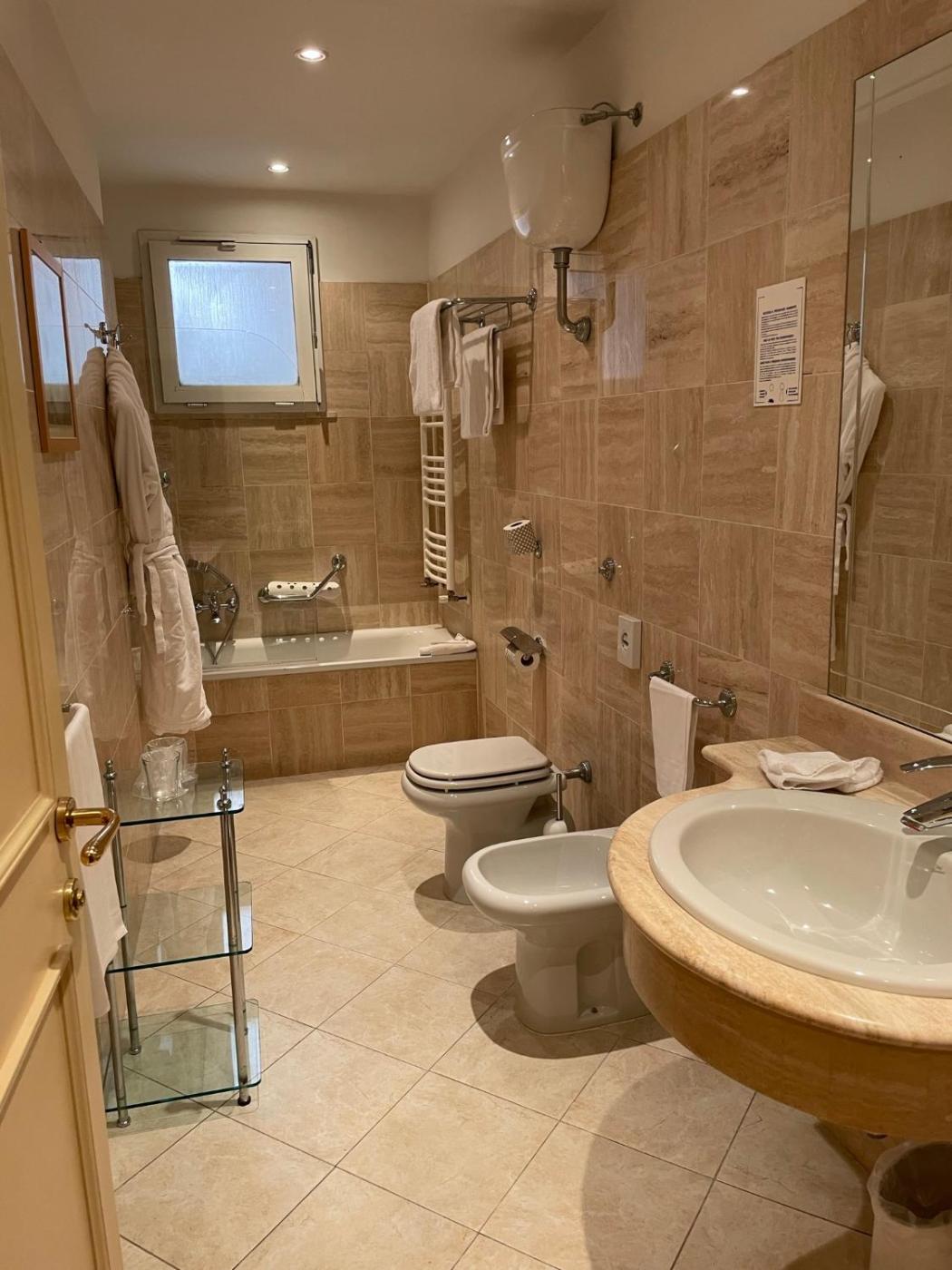 Camera Tripla. Camera tripla dotata di bagno privato con vasca, doccia, bidet, accappatoi edi cortesia. Camera tripla climatizzata con vista sulla città , dotata di una TV satellitare a schermo piatto, un minibar, un armadio e unper la preparazione di tè e caffè. ;