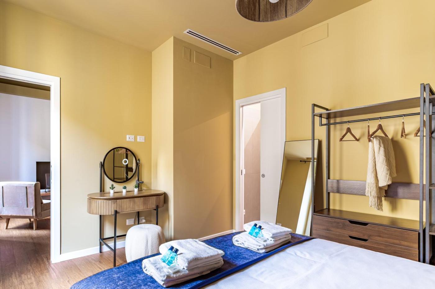 Appartamento con 1 Camera da Letto. This air-conditioned apartment includes 1 living room, 1 separate bedroom and 1 bathroom with a shower. Guests can make meals in the kitchenette that is fitted with a stovetop, a refrigerator, kitchenware and an oven. The apartment offers a washing machine, a tea and coffee maker, a seating area, a flat-screen TV, as well as city views. The unit has 2 beds.