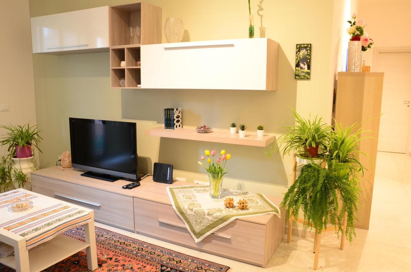 Questo appartamento con aria condizionata comprende 2 camere da letto, un soggiorno, una cucina con utensili, frigorifero e bollitore elettrico, e 1 bagno con bidet e doccia. Presso questo appartamento troverete asciugamani e lenzuola in dotazione.