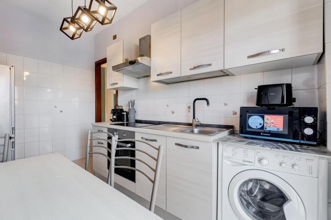 Appartamento con 2 Camere da Letto. This spacious apartment consists of 1 living room, 1 separate bedroom and 1 bathroom with a walk-in shower and free toiletries. The well-fitted kitchen features a stovetop, a refrigerator, kitchenware and an oven. This air-conditioned apartment is comprised of a dining area, a flat-screen TV with streaming services a washing machine and a terrace. The unit offers 3 beds.