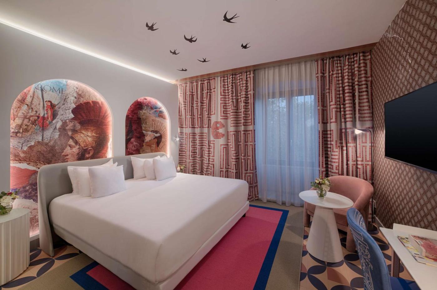 Alloggio Premium nhow. Affacciata su Villa Borghese, questa spaziosa camera è climatizzata e dispone di pavimenti in legno, TV a schermo piatto e menù di cuscini. ;