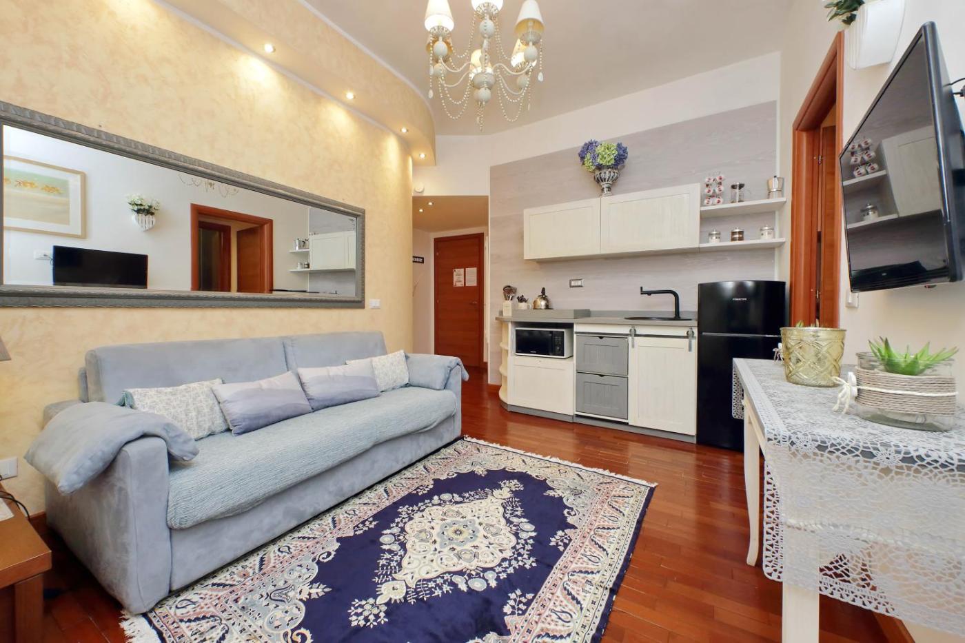 Appartamento con 1 Camera da Letto. This air-conditioned apartment is comprised of 1 living room, 1 separate bedroom and 1 bathroom with a shower. Meals can be prepared in the well-fitted kitchenette, which is fitted with a stovetop, a refrigerator, kitchenware and a microwave. Featuring a balcony with garden views, this apartment also offers a washing machine and a flat-screen TV with streaming services. The unit offers 1 bed.