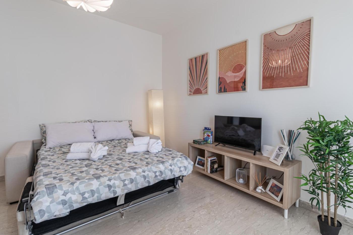 Questo appartamento con aria condizionata comprende 1 camera da letto, un soggiorno, una cucina con utensili, frigorifero e macchina da caffè, e 1 bagno con bidet e doccia. Presso questo appartamento troverete asciugamani e lenzuola in dotazione.